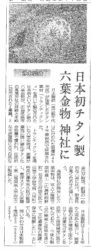 10/14 中外日報様の紙面で日本初 チタン製六葉の記事が掲載されました。