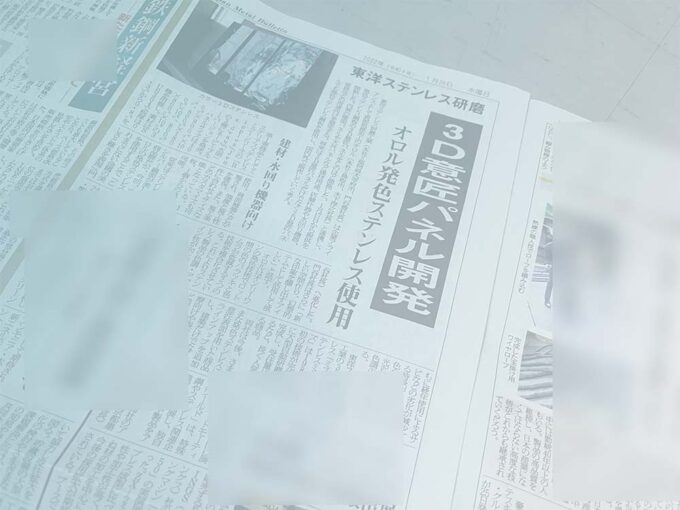 2022年1月26日 日刊産業新聞様にて先日発表した、発色ステンレスの水面柄ステンレスの記事を掲載いただきました。
