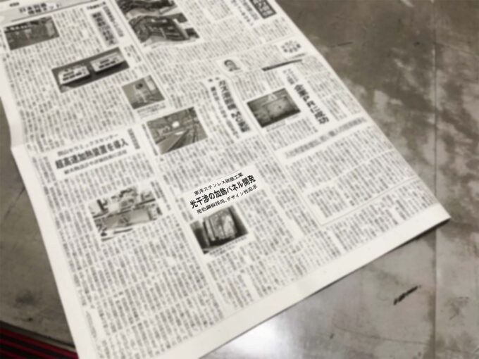 2022年2月4日 鉄鋼新聞様の誌面で、発色ステンレスを用いた水面ステンレスパネルのご紹介をいただきました。