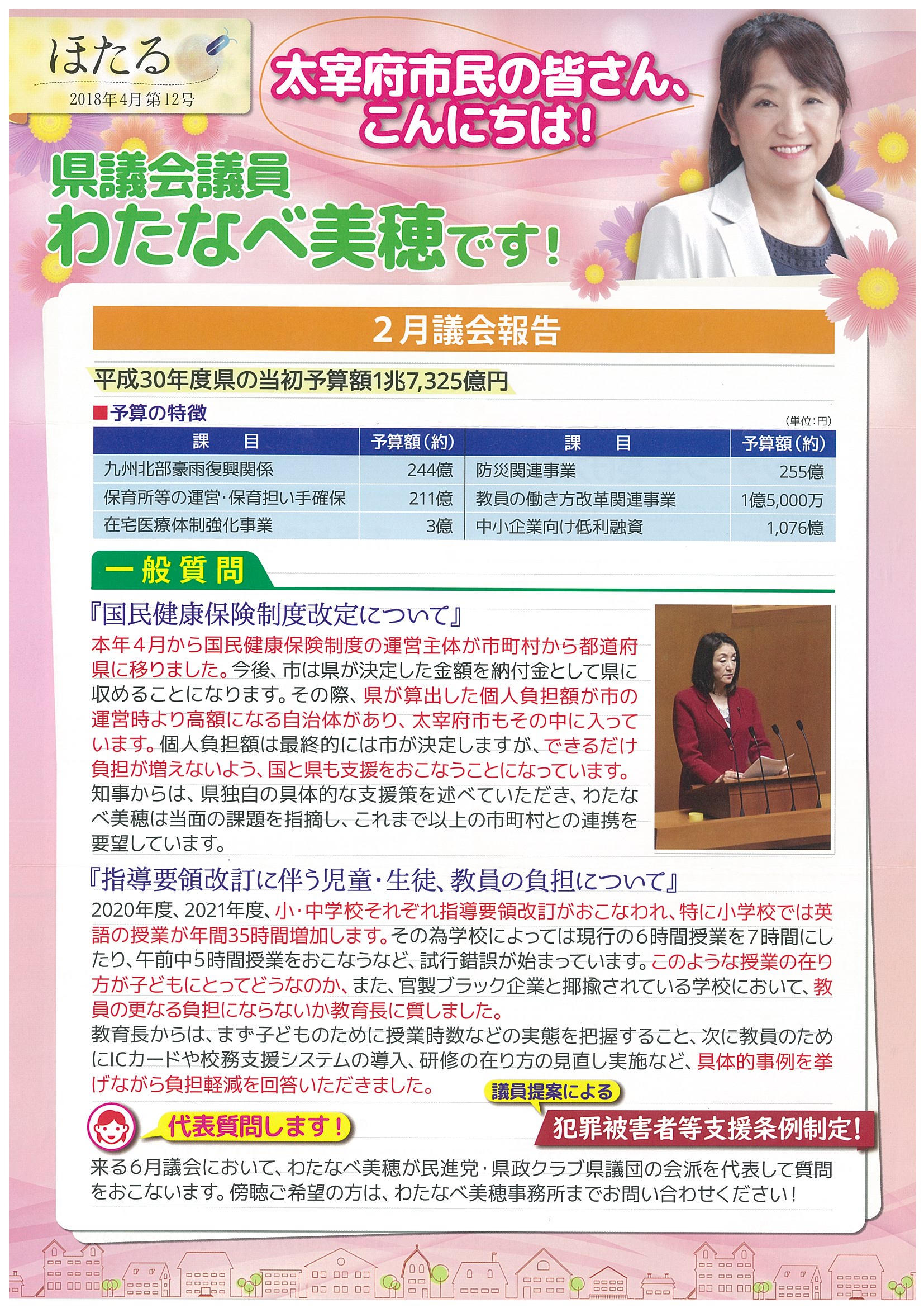 【4/16】福岡県議会議員わたなべ美穂様議会報告書で紹介いただきました。